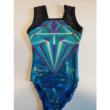 Závodní či tréninkový dres bez rukávů. Ve spodní části je dres tvořen černou lackshinovou látkou. V horní polovině je dres dozdoben bílým potiskem. Dres je dozdoben strassovými kamínky. Výstřih je lemován bílou látkou. Výstřih je vpředu i vzadu do písmene U.