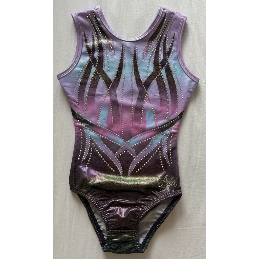 Vpředu i vzadu je dres bohatě doplněn stříbrnými kamínky. Výstřih a rukávy jsou lemovány světle fialovou barvou. Výstřih je ve tvaru U.