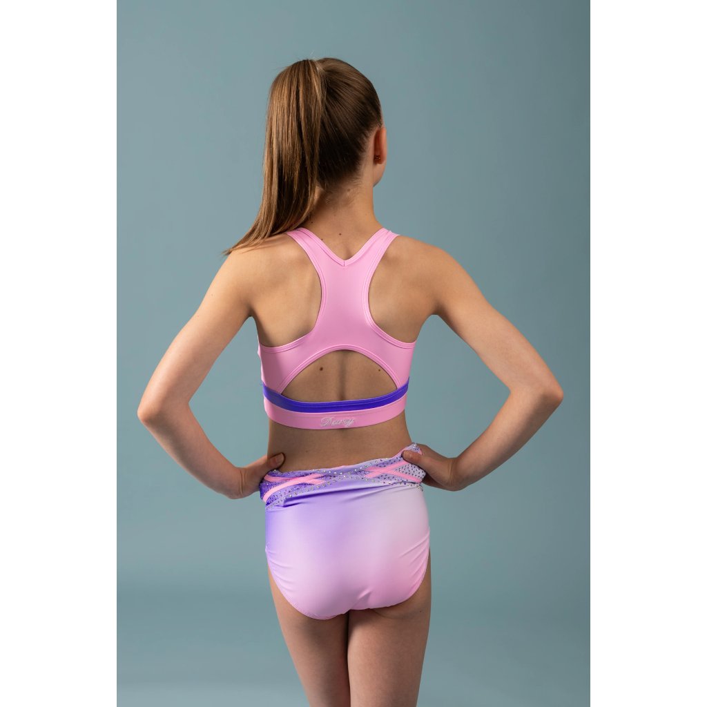 Krásný tréninkový dres Darcy leotards z kolekce Step up sports. Sportovní dres ze světle modrého mikrovlákna s ombré efektem Součástí dresu je i sportovní podprsenka. Dres je dozdoben strassovými kamínky