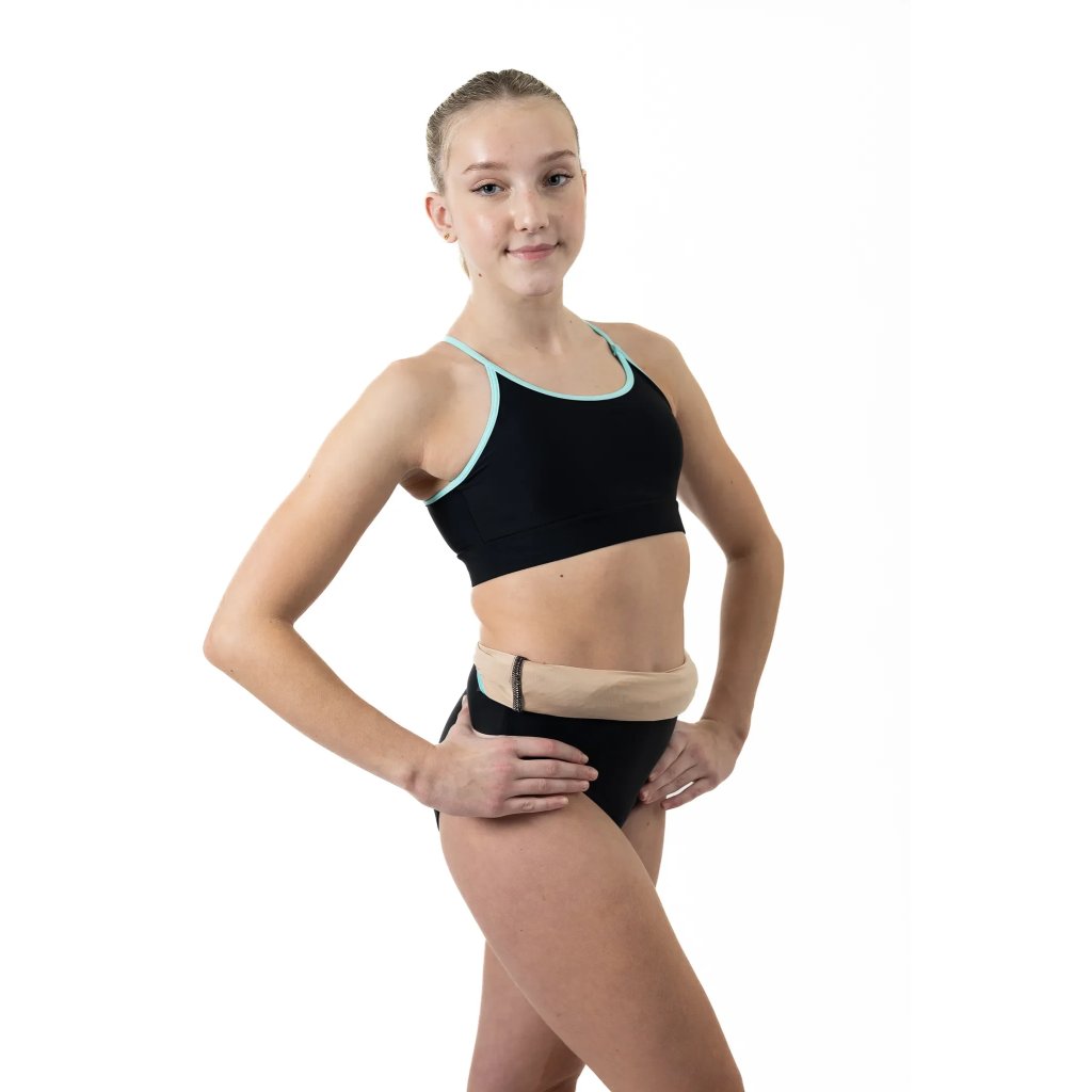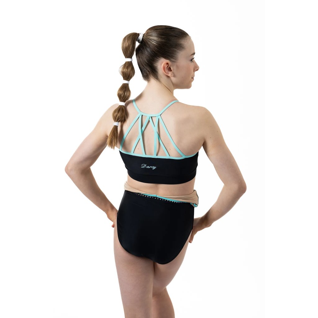 Krásný tréninkový dres Darcy leotards z kolekce Step up sports. Sportovní dres z černého mikrovlákna s modrým lemováním. Součástí dresu je i sportovní podprsenka. Dres je dozdoben strassovými kamínky