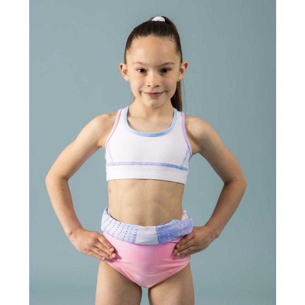 Krásný tréninkový dres Darcy leotards z kolekce Step up sports. Sportovní dres ze světle modrého mikrovlákna s ombré efektem Součástí dresu je i sportovní podprsenka. Dres je dozdoben strassovými kamínky