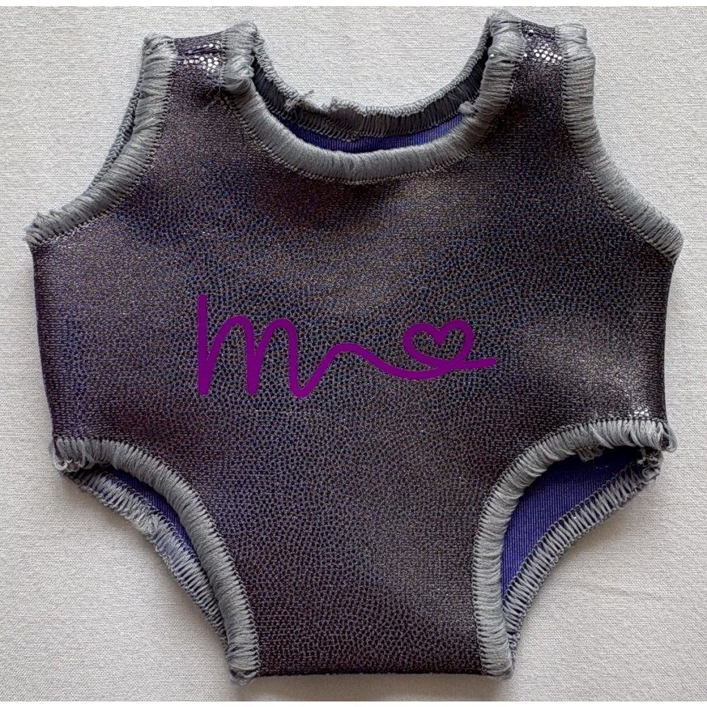 Gymnastický mikro dres na panenky, nebo plyšáky. Dres je ušit z materiálu - lack-shine. Vpředu je nažehlené logo naší firmy. Velikost cca 10 cm.