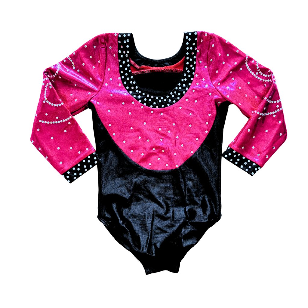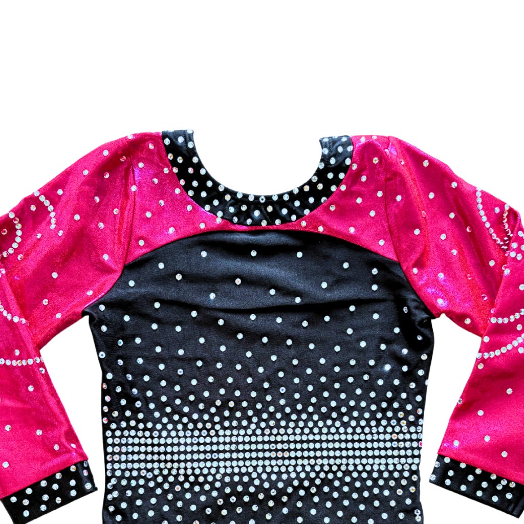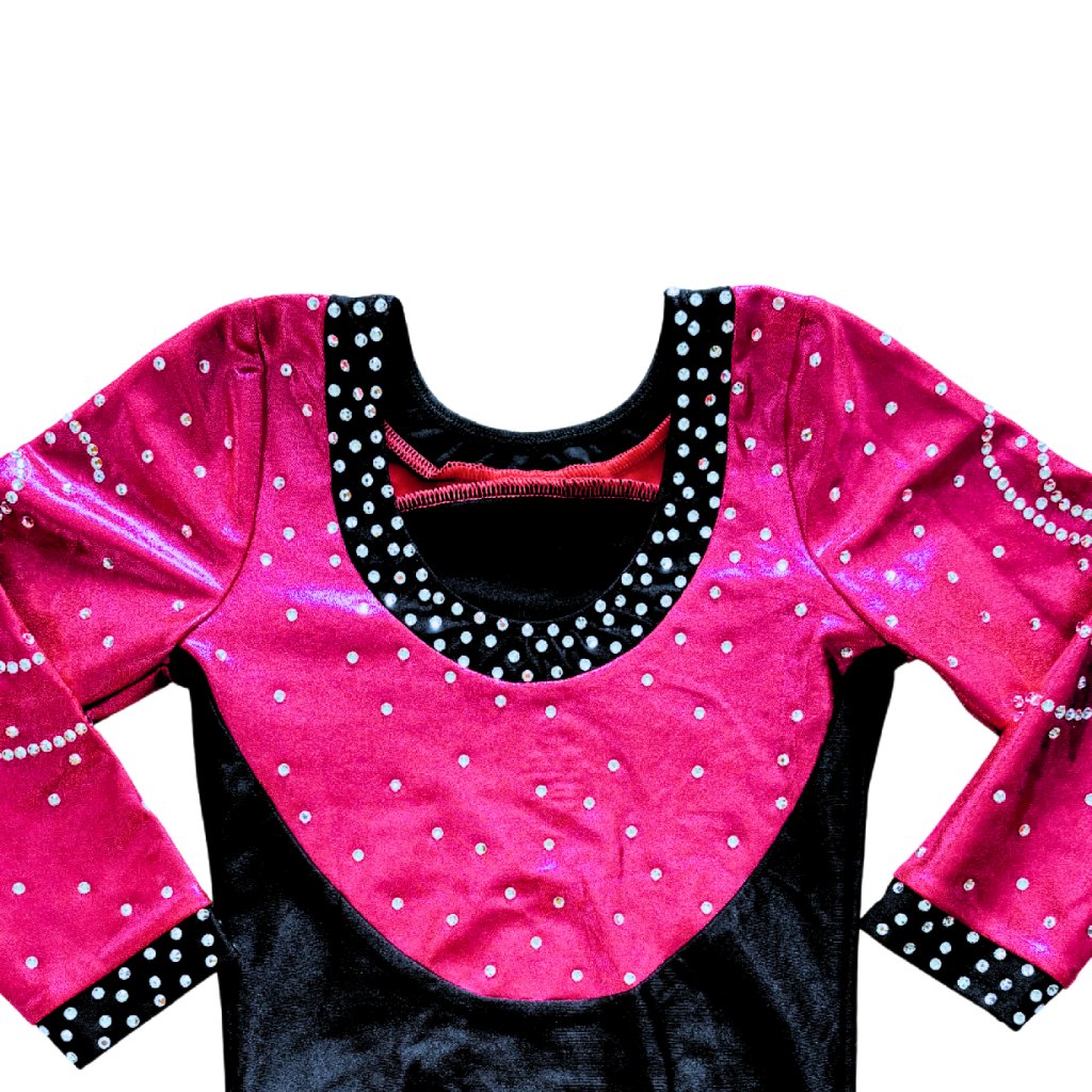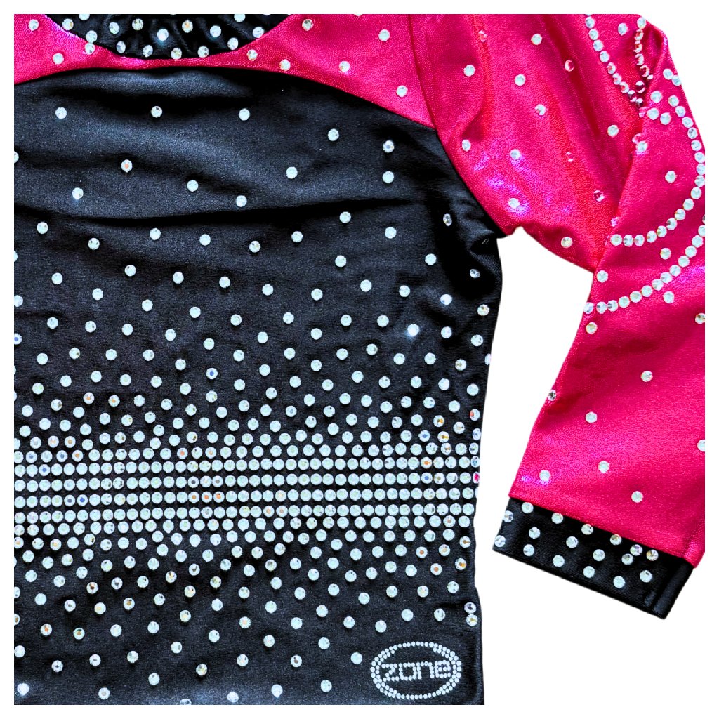 Kontrastní závodní dres s tříčtvrtečním rukávem od značky OZONE. Spodní část dresu je v třpytivé černé barvě. Horní část a rukávy tvoří malinová (růžovo-červená) barvy.