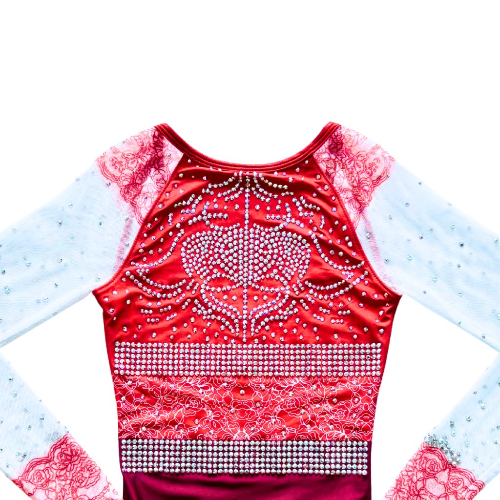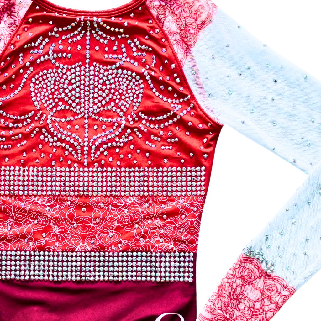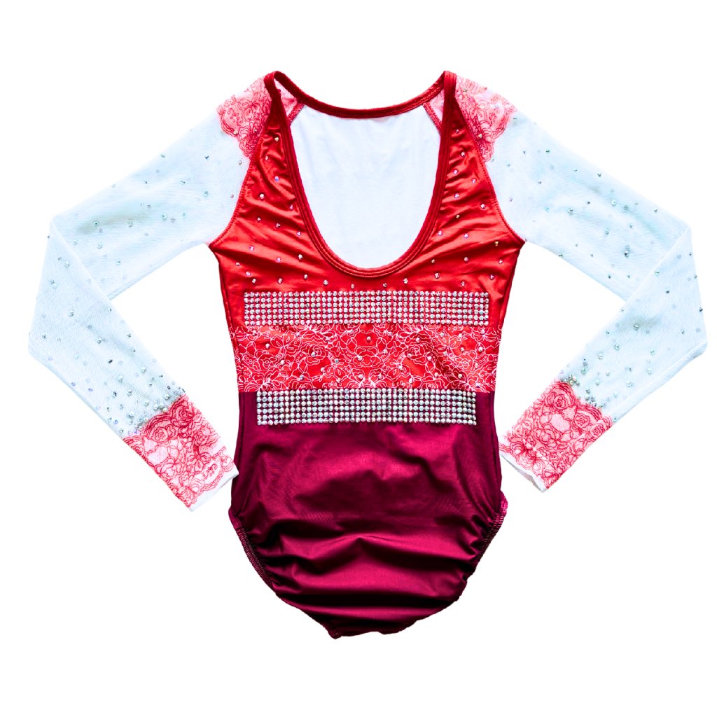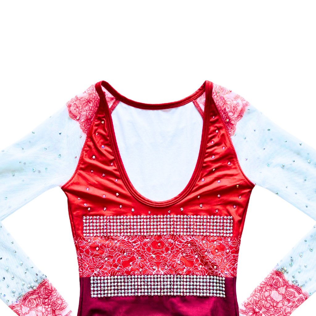 Elegantní závodní dres s dlouhým rukávem od značky OZONE. Základní barvou tohoto dresu je matná červená látka. V pase jsou natištěny bílé krajky. Ramena a rukávy tvoří bílá síťka, která je potištěna červenou krajkou.
