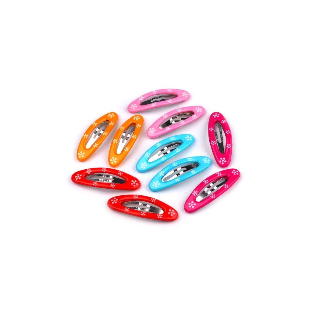 Kovové, barevné sponky do vlasů, pokryté barevným plastem s puntíky.
