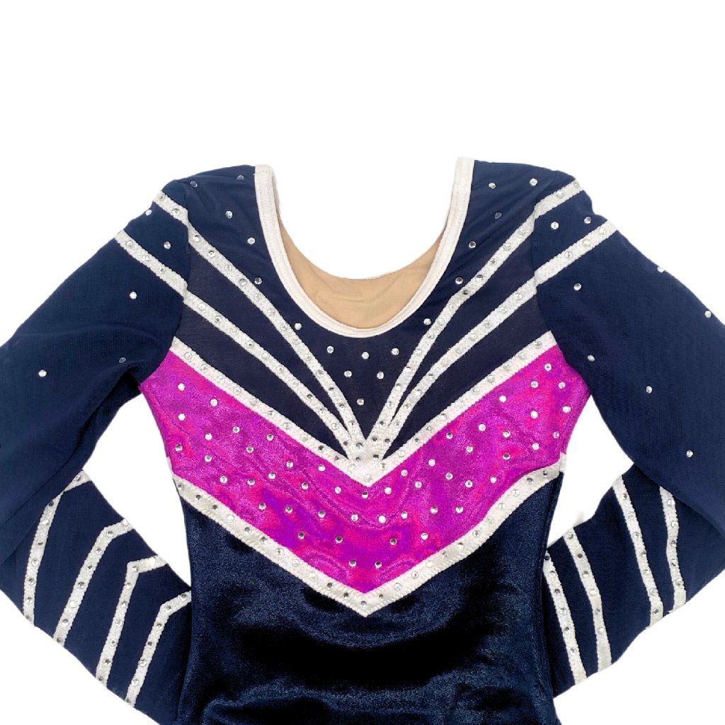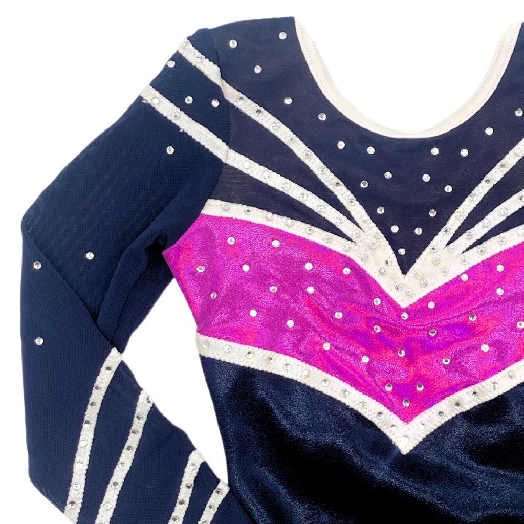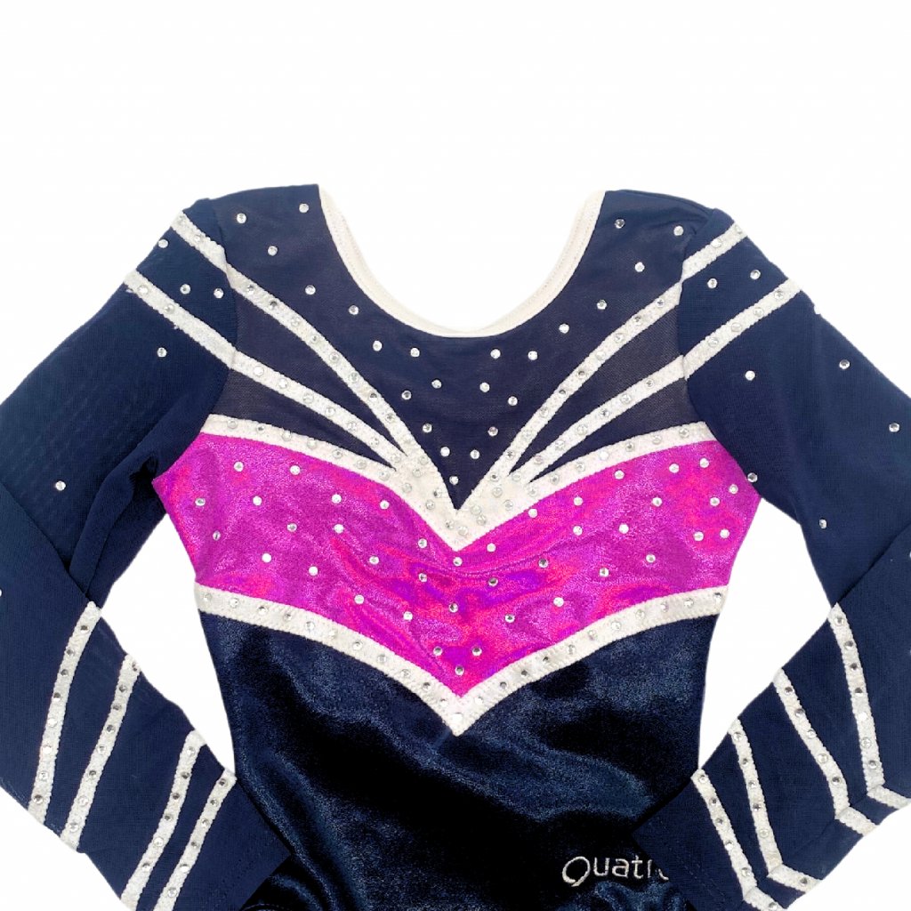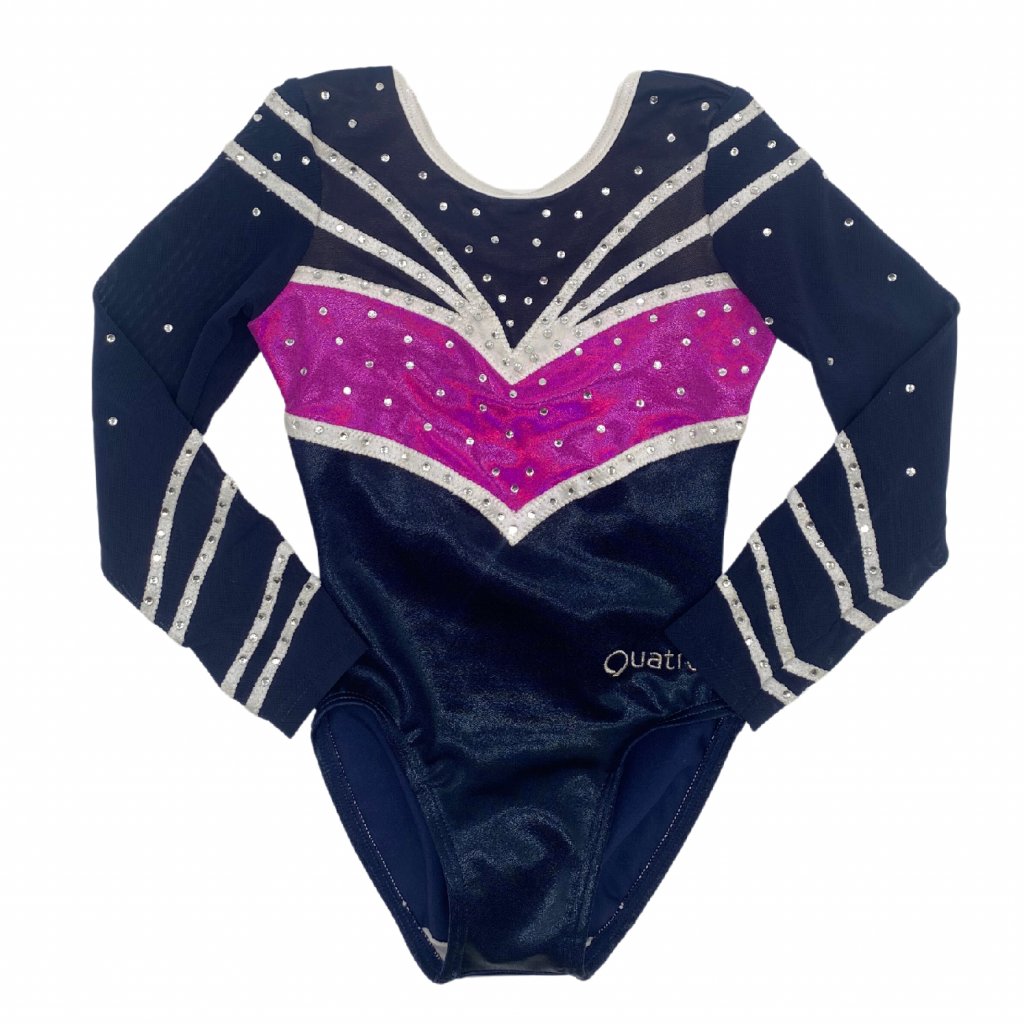 Jeden z nepovedenějších dresů Quatro. Velmi elegantní a krásný závodní dres s dlouhým rukávem. Základní barvou tohoto dresu je tmavě modrý lackshine, který je v horní polovině doplněn výraznou růžovou plavkovinou a tmavě modrým tylem. Dres je dozdoben bílou paspulí, která je i na rukávech. Lem výstřihu je ve bílé barvě a je ve tvaru U, vzadu mírně protažený. Dres je na rukávech, na přední i zadní straně poset stříbřitými, strassovými kamínky.