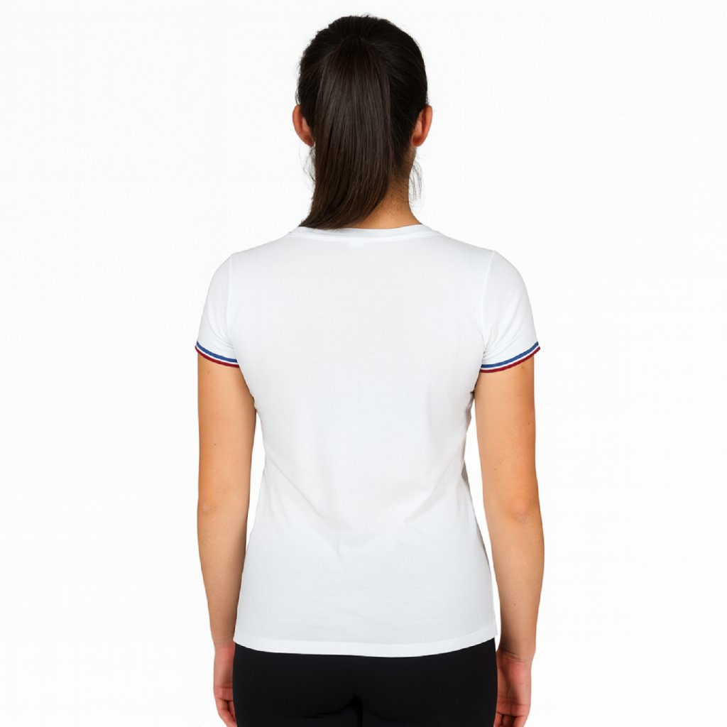Vyrobené z kvalitní bavlny v elegantní tmavě bílé) barvě, s projmutým dámským střihem pro pohodlné nošení. Rukávy zdobí lemování v trikoloře, které dodává tričku sportovní a národní vzhled. Na hrudi září výrazný nápis CZECH GYMNAST.